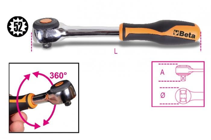 920/58 | 1/2" drive reversible ratchet with rotating handle |