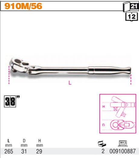 Ráčna 3/8" výklopná kovová s kloubem BETA 910M/56 značková profesionální ráčna s kovovou rukojetí, ráčna na golu 3/8" , značková ráčna na střední golu beta profi ráčna gola americký style