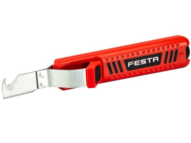 Speciální nůž pro odizolovávání vodičů, otáčecí nůž pro kruhové a podélné řezy kabelů o průměru 8-27 mm, nastavitelný držák kabelů se automaticky přizpůsobí danému kabelu, plášť rozřízneme kruhovým otočením a tažením nože po délce kabelu, blistr.