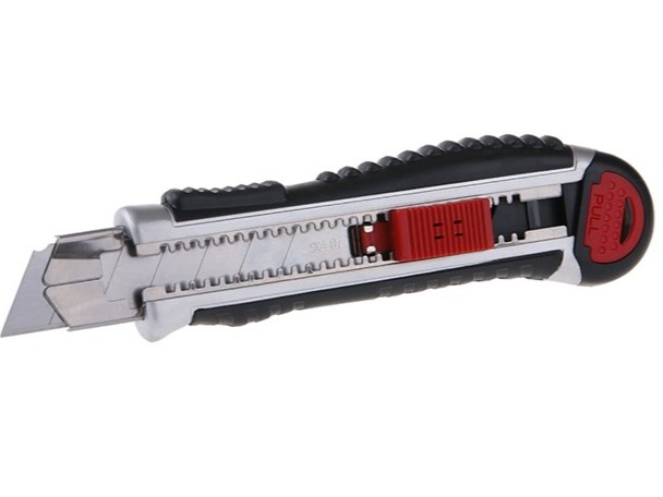 Profesionální odlamovací nůž FESTA 25mm, moderní a funkční design, bezpečnost a ergonomie, celokovové tělo s pogumovanou úchopovou částí, zásobník náhradních břitů, automatická výměna břitu (při naplněném zásobníku), automatická aretace s přítlačnou pojistkou břitu, baleno na blistru.