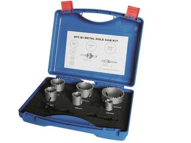 • sada obsahuje pily: bi-metalové děrovací pily HSS-Co8 pravé Ø 22 - 29 - 35 - 44 - 51 - 68 mm