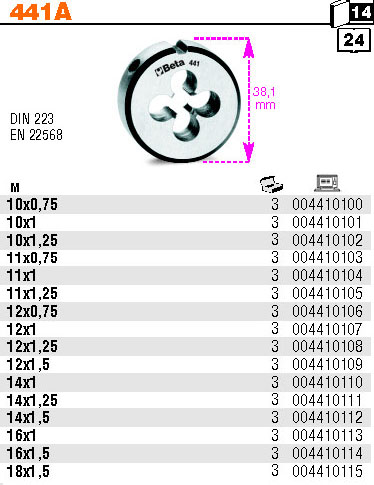závitové očko M16x1 , jemné očko na řezání závitu M16x1,5 Beta 441, Závitové očko jemný závit chromová ocel 441A M16X1.5 DIN 223 UNI EN 4535