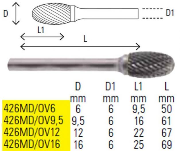 Rotační pilníky oválný, vyrobené z tvrdokovu 426MD/OV stopka 6mm