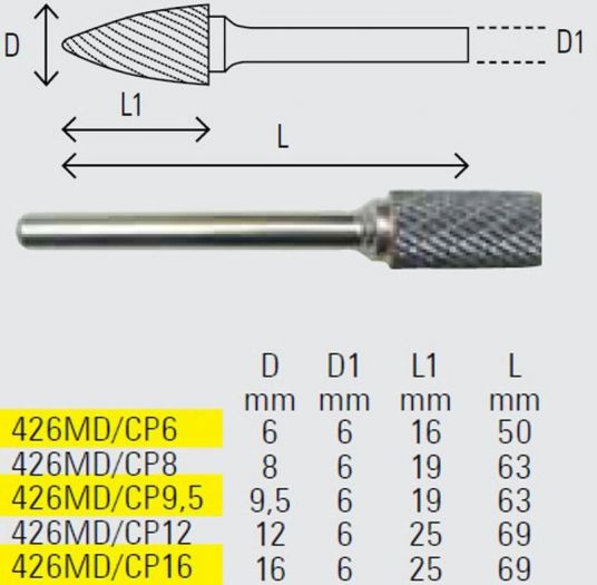 Rotační pilníky válec, vyrobené z tvrdokovu 426MD/CP stopka 6mm