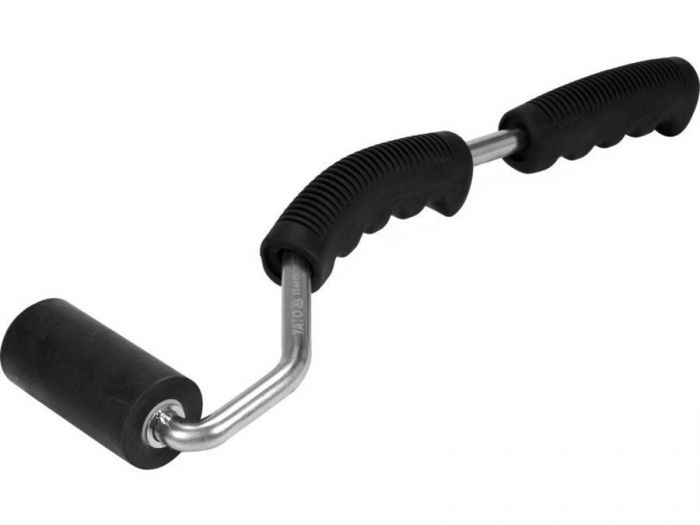 Průměr válečku 38 mm /1-1/2"/ x délka 75 mm /3"/ Nezanechává stopy na materiálu. Speciální, ocelová, profilovaná rukojeť se dvěma měkkými, protiskluzovými podložkami. Válec vyrobený z tvrdé gumy.