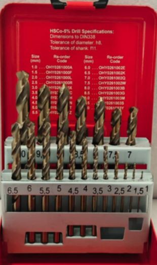 Díky kvalitní materiálové specifikaci HSSCo5 (rychlořezná ocel s 5 % kobaltu) nabízejí vrtáky vyšší tepelnou odolnost, delší životnost a lepší výkon při vrtání oceli, nerezové oceli V2A/V4A, šedé litiny či žáru- a kyselinovzdorných materiálů.
