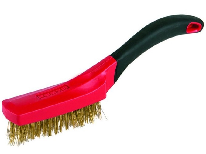 Ruční mosazný kartáč, základ konstrukce kartáče tvoří kvalitní polypropylen, rukojeť je potažena TPR gumou, která zabraňuje klouzání i v případě mastných rukou. Kvalitní uchycení drátkových svazků v tomto případě v pěti řadách. Otvor v rukojeti pro zavěšení. Použití pro čištění dílů, součástek a komponentů, vhodné na nerez. Lze použít pro čištění grilovacích roštů.