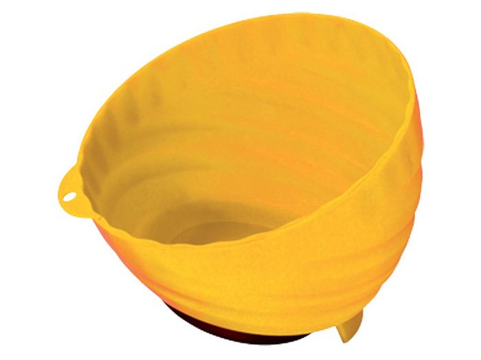 dílenská magnetická plastová miska žlutá na odložsní šroubů a nářadí,vysoká na šroubky pr.150mm, hluboká magnetická miska na dílnu i pro svislé použití na odkládání demontovaných dílů a nářadí