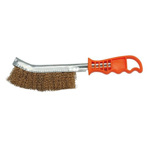 Kartáč mosazný ruční, drátěný kartáč, materiál mosaz, ergonomicky tvarovaná plastová rukojeť. Kartáč drátěný ruční mosaz