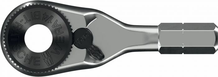 Ergonomicky tvarovaná hlava ráčny pro bity 1/4“ a s adaptérem Wera 870/1 také pro nástrčné hlavice a hlavice s bity 1/4“ (pohon čtyřhranem 1/4“)