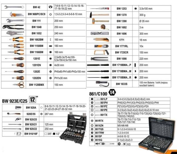 Seznam nářadí v obrázku